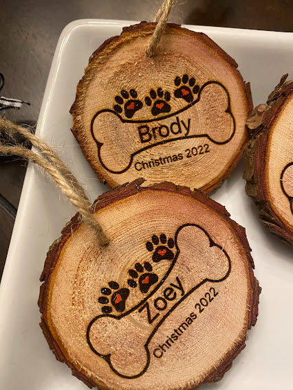 Personalized Dog Name Wood Slice Ornament