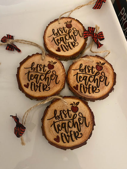 Best Teacher Ever Wood Slice Ornament
