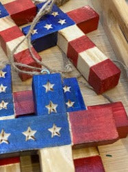 Wood Flag Cross Ornament